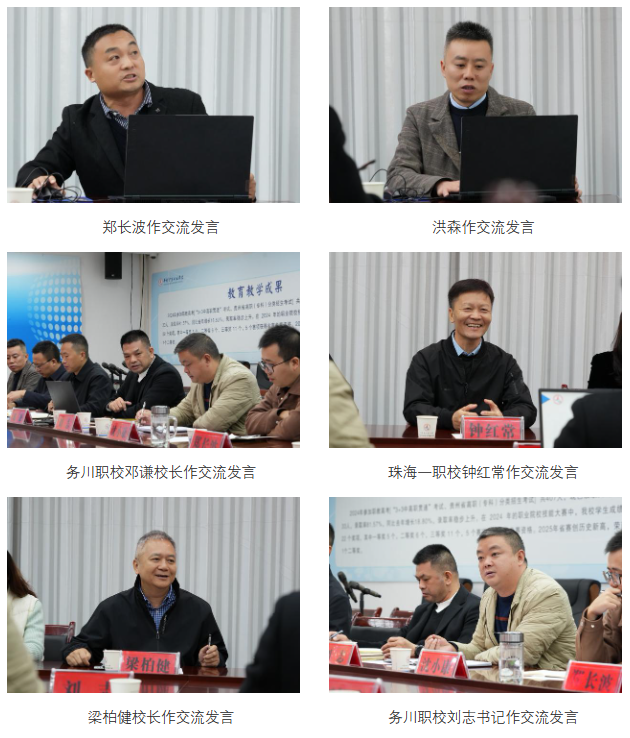 隨后,雙方在黨員活動室召開座談交流會。我校支教教師鄭長波、洪森先后分享駐校教學(xué)經(jīng)驗,從課程設(shè)計、實訓(xùn)指導(dǎo)等維度為務(wù)川職校教師提供實操建議;鄧謙校長詳細(xì)匯報“組團(tuán)式”幫扶成效,介紹學(xué)校在教學(xué)質(zhì)量提升、師資培訓(xùn)等方面的進(jìn)展。鐘紅常書記表示將從名班主任工作室、信息化管理、專業(yè)建設(shè)方面共享資源,助力務(wù)川職校發(fā)展。梁柏健校長在發(fā)言中肯定務(wù)川職校的發(fā)展成果,并明確新三年結(jié)對幫扶將圍繞“四個優(yōu)先”推進(jìn),秉持“著眼未來,做好規(guī)劃,由小到大,由大到強,由強到精”的發(fā)展思路,通過做好存量、謀劃增量、拓展資源、打造品牌,持續(xù)深化資源共享與合作劉志書記代表務(wù)川職校致謝,表示將珍惜合作機(jī)會,推動教育教學(xué)質(zhì)量再上新臺階。